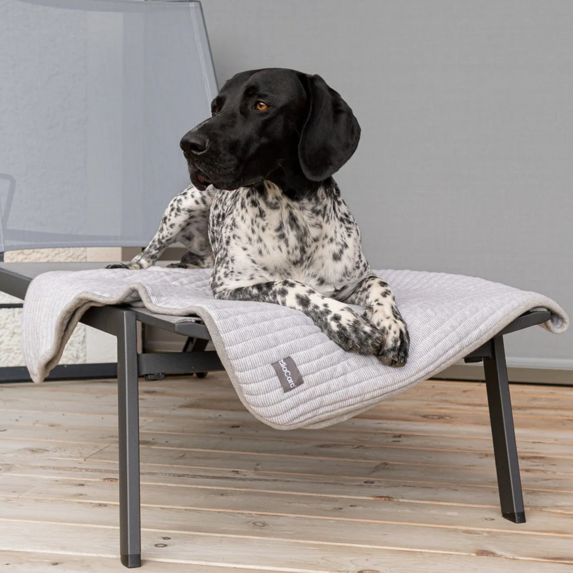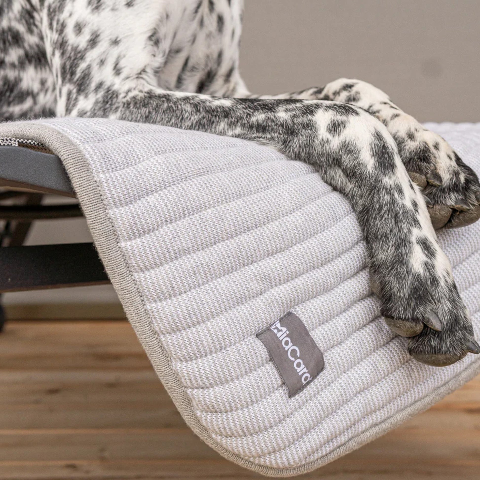 Es más que una manta: es una invitación al confort que también viaja contigo. Su tejido de punto 100 % algodón abraza con suavidad y se adapta a todos los rincones donde tu perro quiera descansar.