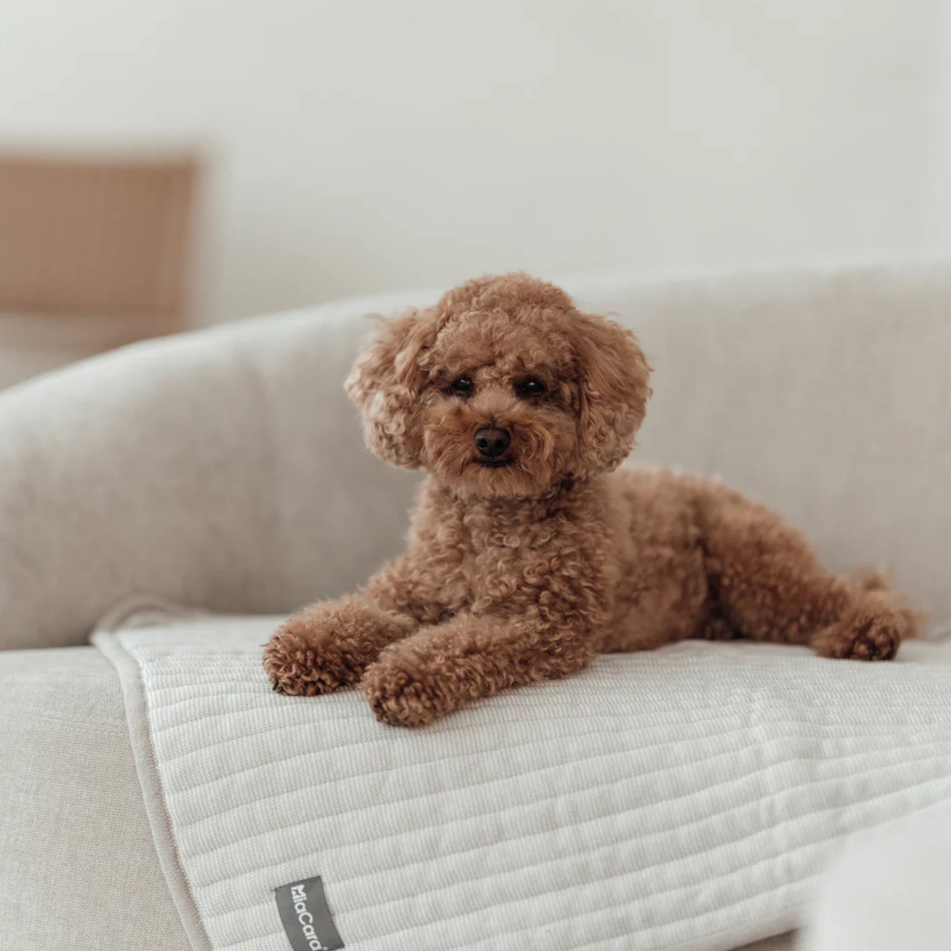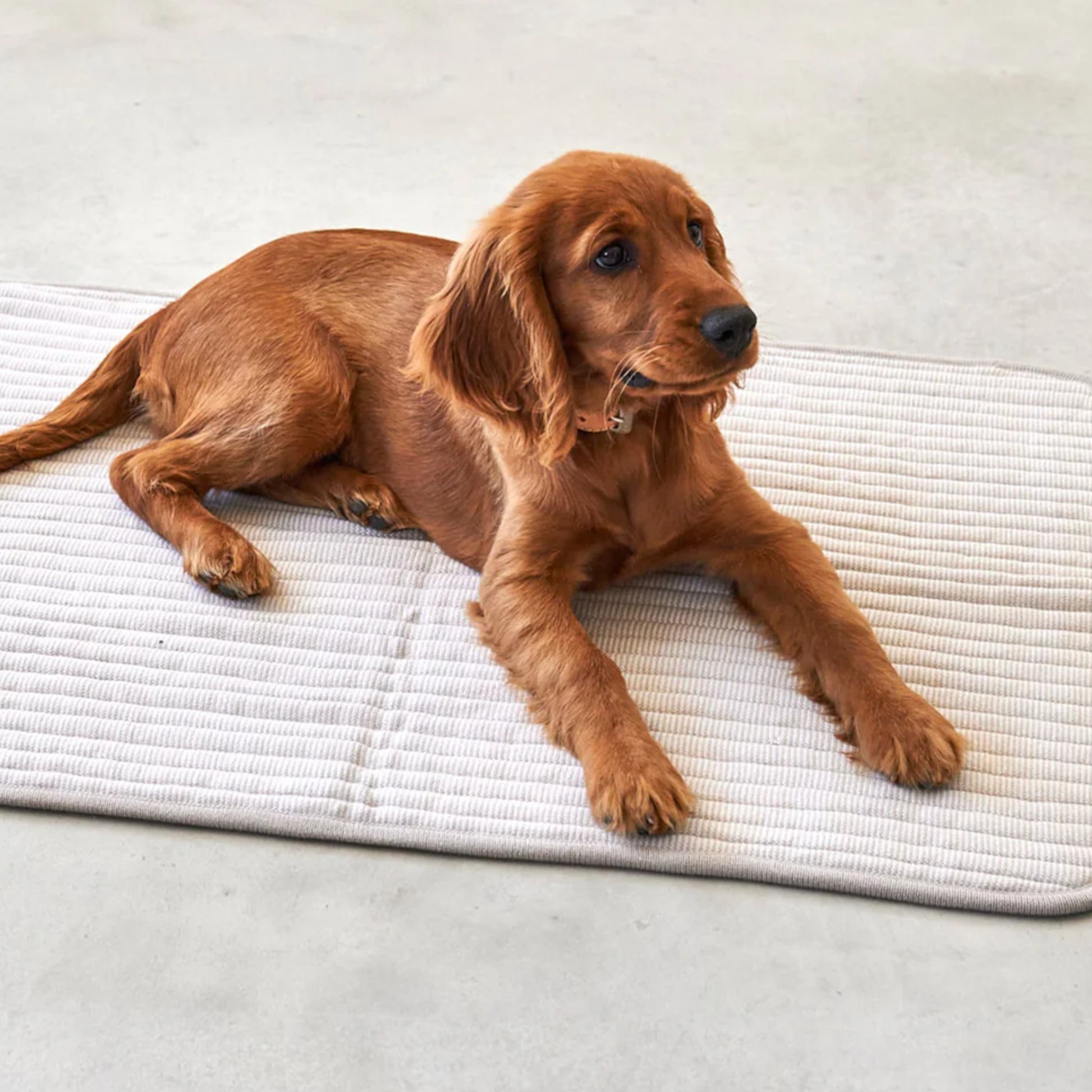 Confeccionada en punto de algodón 100 %, destaca por su textura acolchada de ondas sutiles, que le aporta cuerpo sin perder ligereza. El tejido es suave, transpirable y naturalmente confortable para la piel del perro. Disponible en dos tonos serenos que se integran con naturalidad en hogares cuidados y armónicos.