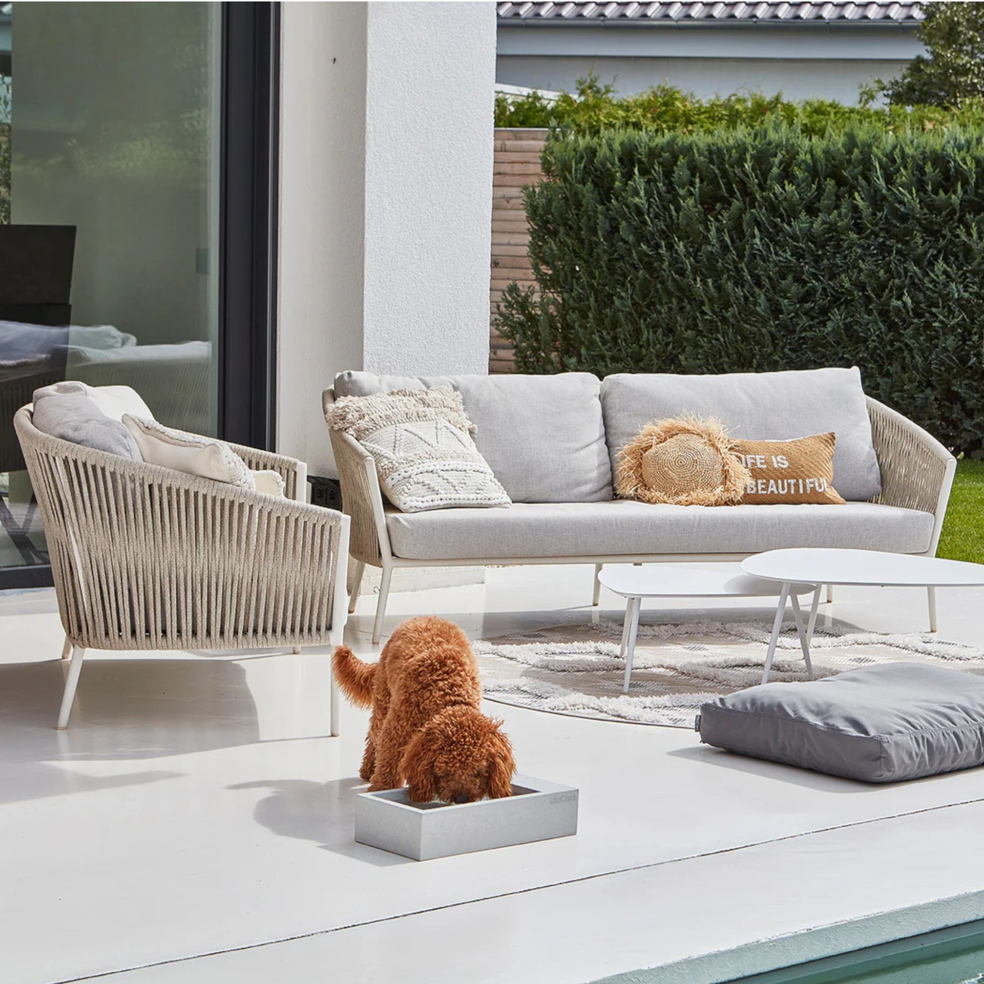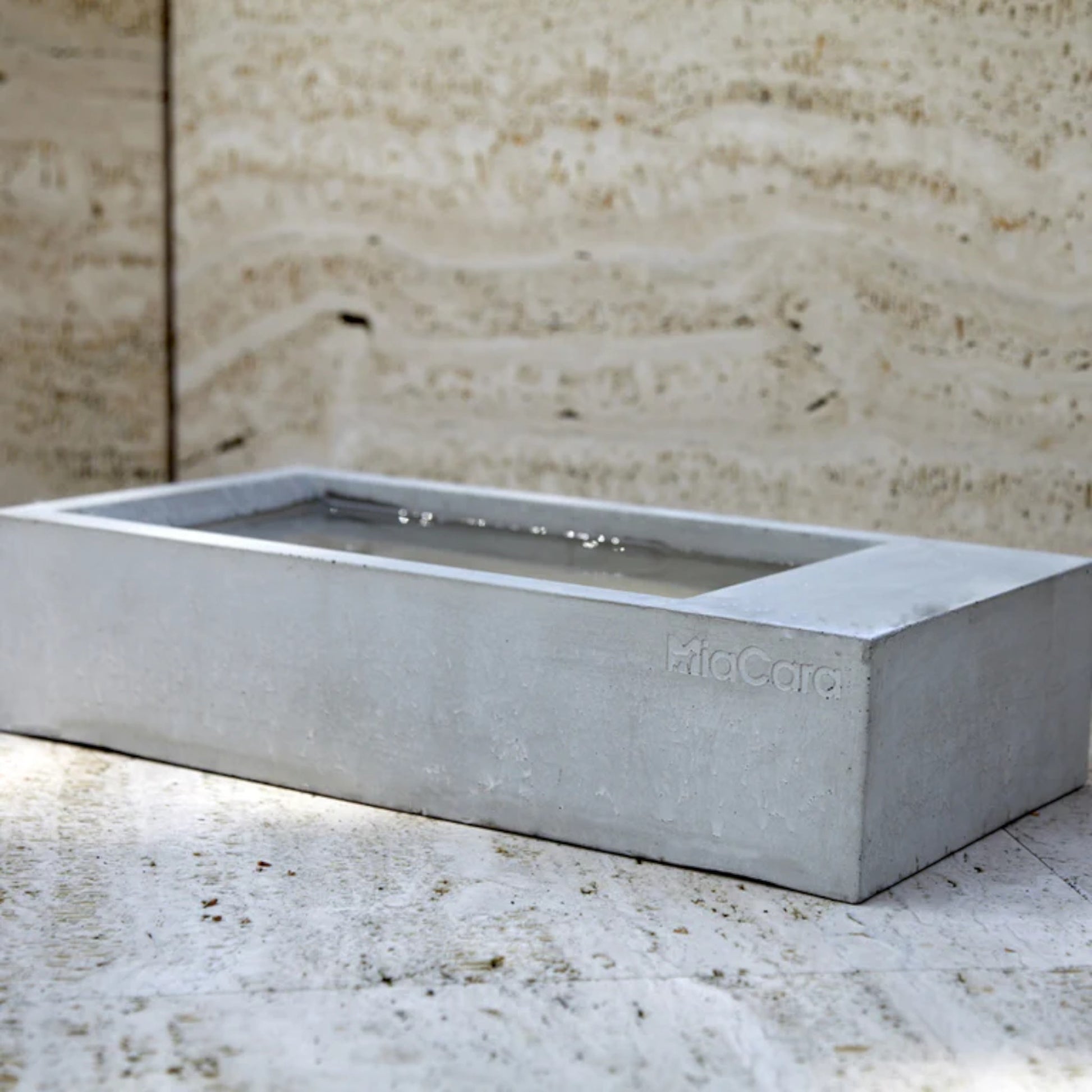 Diseñado por el equipo de MiaCara, el Trogolo transforma un gesto cotidiano en una pieza de diseño duradera y funcional. Su forma alargada y baja permite que perros de todas las razas accedan al agua con facilidad. Su peso lo hace estable incluso en patios compartidos y evita vuelcos accidentales. Ideal para rellenar a diario o dejarse llenar con agua de lluvia, el Trogolo es una invitación a integrar belleza y cuidado también en los rincones exteriores del hogar.