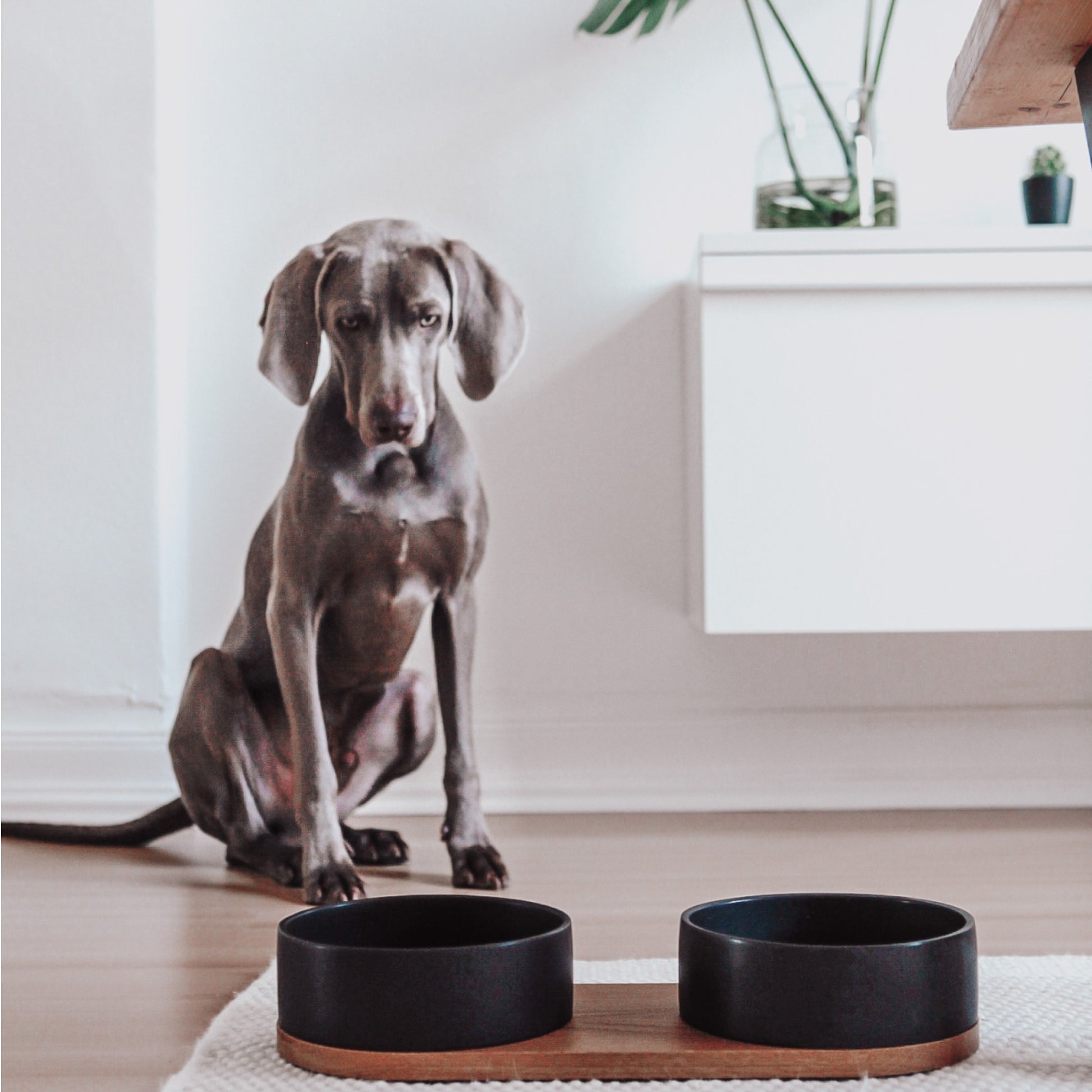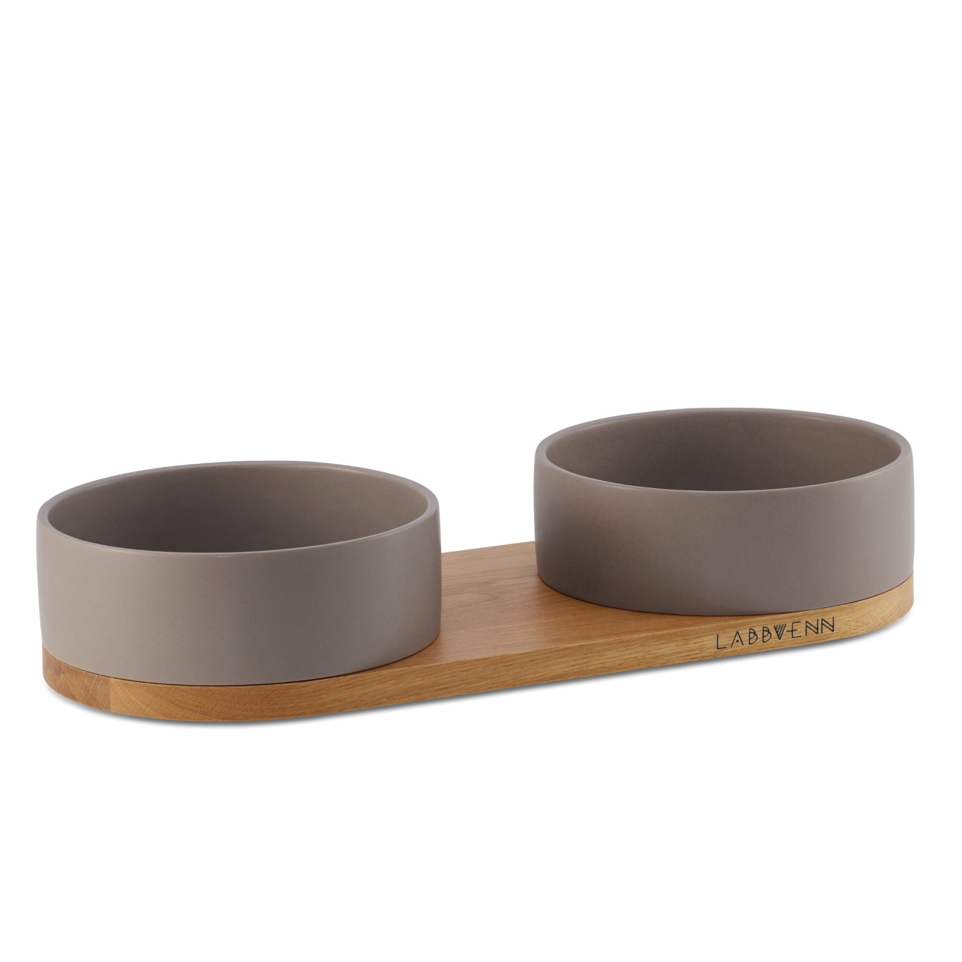Transforma la hora de comer en una experiencia estética. Con dos cuencos de cerámica reposando sobre una base de roble macizo, ofrece una solución funcional y refinada para servir agua y comida en perfecta armonía con tu hogar.